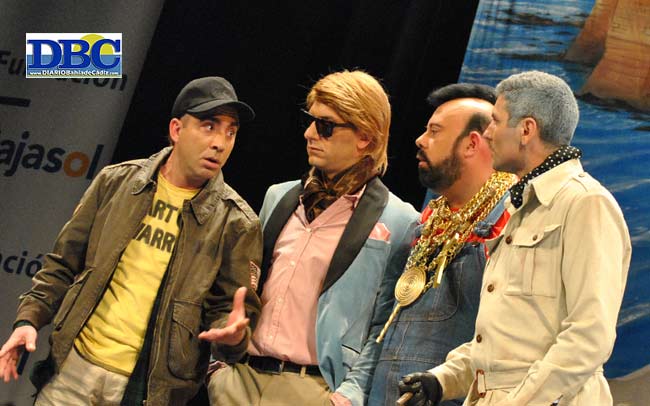 Y clavando la última alcayata de la noche, ya madrugada, el Sheriff, el Lulu, y las cabras payotas… “no está lejos Setenil… y la cabra dijo, beeeeee, y aquí estoy”. Quitapupas de guardia. Un buen consejo en la mochilla del primer pasodoble, sanando la fiebre del carnaval… “se ha vuelto envidioso, malage, patoso, no le gusta ná, lo suyo ná más… ya no siente ese pellizquito cuando pisa este escenario… premio, deja el premio, cuando el concurso sea una enfermedad, no te lo pienses deja el carnaval”. Y con sorpresita final la segunda letra desahuciada… “pasa niña pasa, que aunque esta casa tenga que ocupar, pero en la calle tú no duermes más”. Y ese mismo pasodoble le sirve para el chiste del primer cuplé. En el complementario, “Pellejo, te pago el doble si no lo cantas”. Machaca machaca… ya tengo la poción contra la tristeza… cerveza cerveza cerveza. Ole el pellejo relleno. Repartiendo remedios chirigoteros en un popurrí que acusa la hora, consumiéndose con vitalidad… “cuídate, saborea la vida con alegría, y a vivir que son dos días… se marcha el curandero, buscando otro paciente pa alegrarle el corazón”. El tontito de las banderitas se ha quedado bloqueado con la receta contra las almorranas. El señor mongolo (de Mongolia) le responde: no tienes cura, chaval.