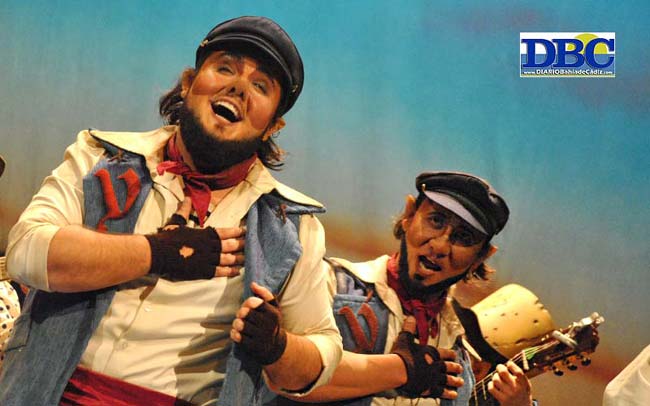 El duende de cuatro barrios señeros de Cádi Cádiz, en escena: la Viña, el Mentidero, el Pópulo y Santa María… “no puedes verme porque me oculto en las entrañas del gaditano, en las heridas que te provocan los que gobiernan, en los cohones de los trabajadores que cortan el puente, en la verdad que destruye tu mala suerte… soy tu raza, tu conciencia, tu locura, la esencia que no se enseña que no se aprende…”. Los de Nene Cheza son vecinos de los duendes coloraos de los Carapapas, ¿no? “Mi nación es Cái”, sentencia el primer pasodoble, dibujando al gaditano desde dentro, y no como se ve desde fuera… “el duende de nuestra tierra, además de a marea, incienso y romero, huele a lucha y a pelea y a la sangre del obrero… mírame bien la etiqueta, que no pone copla y fiesta, sólo pone gaditano…”. Y el abuelo babea por la nieta, por su princesa, en la segunda letrilla… “que el amor de mis amores, lleva sangre de mi sangre”. Onanismo cupletero. En el primero, “lo que más me flipa es descargarme peliculitas… bajas las pelis, pero suben otras cosas”. Me cashi en la mar, me cashi en la mar, me cashi en la mar. Esta esencia del gadita distribuida por cuatro rincones recorre ese popu tirititrantantero…. y “lo más grande de Cádi, siempre fueron los viñeros… levanta gaditano no te tragues tus miserias, la sangre de mis barrios es la savia de esta tierra, y el duende de Cái eres tú…”. ¿Yo?, no tú no, tontito de las banderitas. ¿Y yo?, tú tampoco, señor mongolo (de Mongolia).