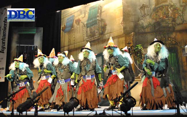 Bujas Piti del Cádi añejo, en el concepto de la chirigota verde ‘Las que embrujaban de verdad’, con una presentación un tanto desconcertante. Ya está listo el brebaje. Paco Cárdenas y Ramón Peñalver ponen la letra, y la música es de Jesús Romero Ariza y José Antonio Segundo Zajara. Pum pum. Reivindicando un pregón de la bruja Piti, como lo tiene el dios Momo, en el primer pasodoble, que al tiempo quiere ser un grito por la igualdad real en los carnavales. Me invento yo. La asociación Mujeres de Acero, de la Viña, se lleva un gracias en forma de copla en el otro pasodoble… “pa que mi barrio, no se me oxide”. En los cupleses, la suegra frigopie y la modita de sacar todos los días procesiones, en pleno verano salío una magna, “y todos comiendo un magnum”. Ajín. Yo no tengo gato neeeegro, todas tenemos el gato blanco. El tontito de las banderitas me mira con el rabillo del ojo. El señor mongolo (de Mongolia) cuenta papelillos impares. “Ramón y Paco no sacan ná bueno desde el po popo pó”, se subraya en una de las cuartetas del popurrí chocheante al cuatro por cuatro.