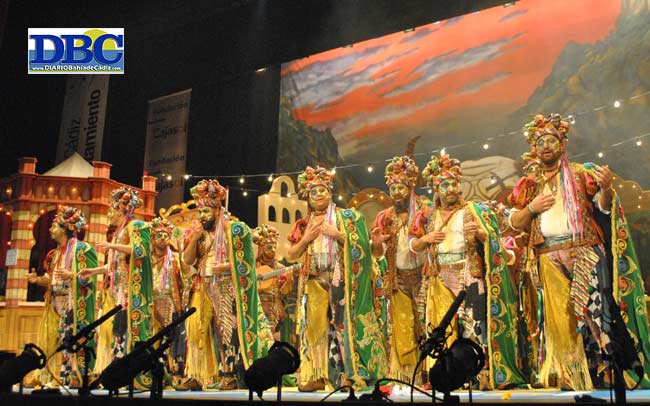 Guau guau. Que se pare el mundo redondo, que toca lo que toca. La cabeza perruna de la función, la comparsita de don Antonio, un seeeeñññor, el Goku…. El Falla, patas arriba, pide dogchow. Barroquismo en el tipo y en la escenografía. Esperando el libro de instrucciones. Símbolos y más símbolos. Eso de venir sin forillo, ya, como que, camaleón camaleón… “Cuidado que vengo que muerdo, que traigo la furia más loca, la sangre en la boca, la rabia el cuerpo… sigo siendo el mismo perro, el perro de Andalucía, vengo vengo que muerdo…”. Con corona de bufón, collar de esclavo “de Isabel y de Fernando”, manto de Ecce Homo, la pandereta “el símbolo de la España inferior que va pariendo mesías, poetas”, “esa flor que no te quiere” y “por fin coronao, maldito holgazán, abre tu barraca, empieza a reinar, enciende los farolillos de tus ocho princesitas…, ríe, baila al viento, sufre, traga, calla, cómo de fiel es mi perro”, pero “el perro hoy se rebela, hoy muerde la mano, rompe las cadenas, no tiene amo, hoy traigo la sangre en la boca, veneno en forma de coplas, cuidado que mueeeeeerdo”. Guaaau. Presentación rabiosa, grrrrrrr. Sin bozal, Antonio Martínez Ares. La pasión eterna del andalú, como la del Cristo aquel, entrando en el primer pasodoble… “febrero se va a ir de su mano, comienza otra historia bendita… este misterio sólo se siente, cuando tu madre te pare andaluuuuz, porque desde que nacemos, estamos ataos a una cruuuuz”. ¿Se puede decir menos rebuscao?, pregunta el tontito de las banderitas. Por preguntar. Con reflexión se introduce el otro ego-pasodoble: “pronto llegará ese momento, que tú no me quieras tanto, que no te valgan mis requiebros… será mañana, será pasado, lo que es seguro es que estoy marcado… ay amor mío cuánto nos hemos querío y nos hemos peleao, menos esos trece años que se quedan para mí… no me abandones, ay amor mío, porque presiento que se acerca ya… que me quiten lo ladrao, o me voy a poner a lloraaaar”. El Ares pensando en su jubilación, ay ay ay, con lo shungo que está el tema pensiones. Cupletillos abreviados, con la Teo y er Kichi limando asperezas en pelotas, ¿Jurado?; y el Bertínosborne… “que me cae mu malamente”, jarto mejillones. Cuando pongas una bandera, primita mía en tu balcón… pon la de Cádiz, con su pendón, y al que no le guste que ladre, porque esa es la mare que a ti te parió. Palabras mayores, suena el popu que atraviesa los tópicos más rancios del que mira con superioridad desde el norte, la identidad propia, la emigración indeseada, la resignación ¿o la revolución?, para escucharlo de pie, y digerirlo acostao… “así es como nos ve, esa otra mitad de España peleá con la otra España, que ni come ni deja comer… bufones, somos sus bufones, de sol y procesiones nadie nos oye sufrir, juglares de ferias y carnavales y una sonrisa a raudales, pa cuando quieran venir, los que levantan el país…”; “no te vayas, deja quieta las maletas, sé que el tiempo se te agrieta, tu sitio está aquí a este lao… es sencillo decirlo en una canción, qué difícil cantárselo a esta generación, primo quédate, prima quédate … como odio ese maldito tren…”; y al aullido final, “fuera coronas, porque este perro sólo es siervo de ese rey que es su persona…” y fuera yugo, y rosas “que no alimente a las gaviotas”, y caretas, y el manto, “un hombre queda, limpio de cruces, un hombre queda… esta montaña no es Sierra Morena, es la piedra más grande del camino, si no la apartas eso es lo que dejas a tus hijos y a sus hijos… vengo que muerdo, vengo que muerdo, hermano, ladra, luego cabalgamoooos”. ¡Ostia Patxi!, ¡cony Carles!, si hasta dan ganas de nacer blanquiverde. El tontito de las banderas no encuentra a Buñuel por ninguna esquina. El señor mongolo (de Mongolia) es más de periquito como mascota. En modo procesando… Vamos, no te comas el tarro; el pasodoble de los Yesterdais con ostentación. Guau guau.