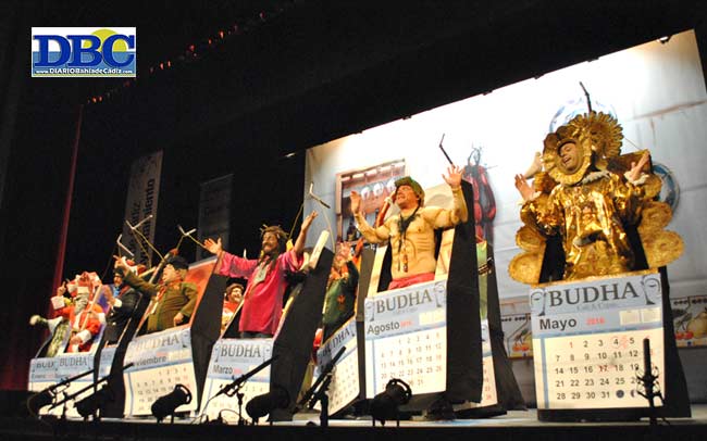 Ahí vienen, ¿de qué irán de qué irán? Luces y acción. Los típicos calendarios del año de la pared, viéndose en paro, con alcayata y tó… “mi vida es un sacrificio junto a la ristra del chorizo… si supiera usted lo que yo veo en las cocinas, tú alucinas tú alucinas”. Es la chirigota de la localidad sevillana de Los Palacios y Villafranca ‘Los que pasan de página’. Curiosa. La letra es de Fermín Coto y Francisco Javier Aguilera, y la música de Carlos Pérez. Un pasodoble medioregionalista mediopiropillo, “hoy le canto al sur de España, nuestras ocho maravillas… si me dieran a elegir… el Gran Teatro Falla, que en carnavales une a Andalucía”. Y a Mérida, y a Burgos, y a Beniaján, suma el tontito de las banderitas. E indirectamente tratan el asunto del Selu cantando en un mitin político naranjito en Catalunya y la que se lió… “ya sabe usted dónde se puede meter su falsa filosofía… darle a mis niños un puchero, esa es mi única ideología”. Triste ideología a la que te conduce este sistema: dedícate a tratar de sobrevivir, tragando lo que sea, y no aspires a cambiar nada. Fuuu, el señor mongolo (de Mongolia) se está rayando, como el queso. Dale un golpe en la espalda. Con la lengua fuera siguen los cupletillos… “yo iba conduciendo y ella me hacía las preliminares”, y “ya cumplió Andreíta los dieciocho… ya no quiere pollo ahora la niña prefiere… naggets”. El Falla es muy de la niña del Jesulín. Puigdemont, el 155, ta-chao, ta-chao. Viaje por los doce meses en el popurrit. Mu celebradas las cuartetas del Piqué “tú eres españó españó españo”, la semanasantera, y el “oooeeé oooeeeée oe oé oé, la Rocío ya va a devolver”. El último del calendario, febrero… “y te quiero mucho máaaaaaas”.