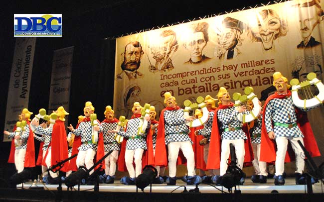 Domingo insulso, que sí, que se trasladó a la función en el Falla: abría el coro de Julio Pardo, ‘Don Taratachín’, en su línea espectacular, en lo formal. Y no desentonaron las chirigotas sevillanas ‘Los que pasan página’ y ‘Ojú qué penita de patio’, y las comparsas ‘La cumbre’ y ‘El incomprendido’, de Alcalá de Guadaira y Almería, respectivamente. En una noche de ciegos, ya se sabe, el tuerto es… el que menos chocasos se da.