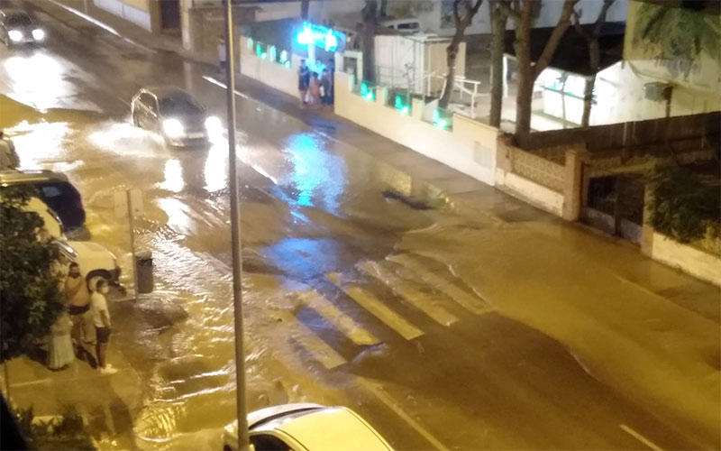 En la noche del miércoles 19 se rompía en Chiclana una tubería en la avenida de los Pescadores, en La Barrosa, frente a la urbanización La Almadraba, y por el gran caudal de agua que emanaba y su extensión comenzaron a inundarse de inmediato sótanos y parcelas cercanas a una cota inferior que la calle.
