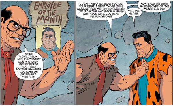 El cómic que hoy nos ocupa es una maravilla en forma de crítica social. Han cogido a las creaciones de Hanna-Barbera y les han dado una dimensión real, los personajes son una excusa para contar una grandísima historia, los autores buscan ese momento primitivo para poder jugar con el inicio de todo, analizar a los humanos en su época más inocente, para contarnos cómo empieza a degenerar nuestra sociedad.