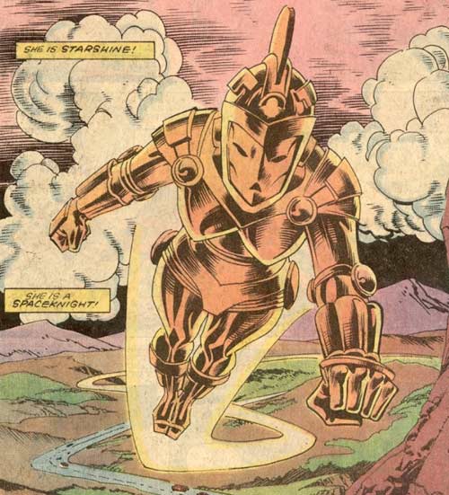 Pero su papel como “superhéroe” era solo casual. ROM tenía su propia guerra que luchar, y pronto la serie se llenó de personajes nuevos: Fantasmas hechiceros, perros infernales, exoesqueletos de combate, y, por supuesto, otros Caballeros del Espacio, como Starshine, su compañera, o el expeditivo Terminator.