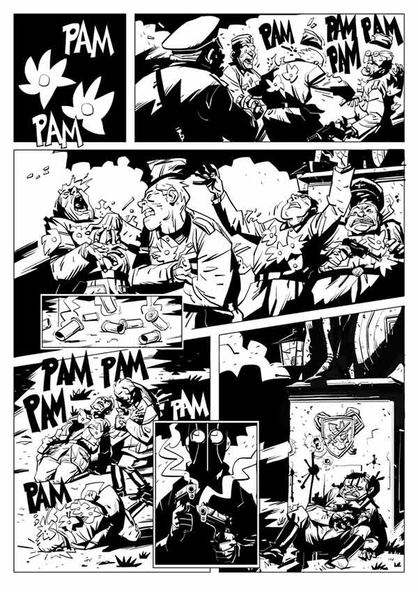 Un guión muy entretenido de la mano de Víctor Santos, que esta vez solo se encarga de escribir pese a ser autor completo, una historia sencilla sin grandes giros, muy bien contada como mandan los cánones del género. Para quitarse la espinita de no dibujar al final del cómic podremos encontrar un relato del personaje con algunas ilustraciones de Víctor, esto también refuerza el sentido ‘pulp” ya que las viejas revistas combinaban tanto cómics como narrativa.