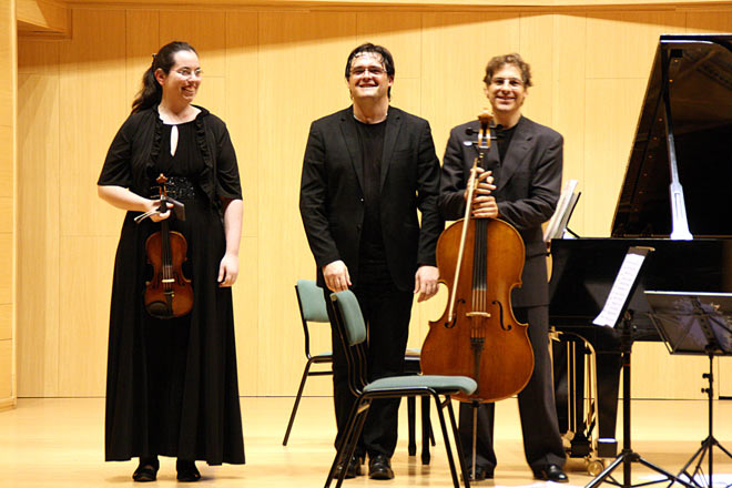 El pianista Juan Caros Garvayo se encargó de explicar el programa y destacó especialmente las figuras de Gombau y Fernández Blanco, compositores habitualmente descartados en las programaciones de conciertos, pero que tuvieron un papel relevante en la historia musical española de la posguerra civil. El Trío Arbós acomodó su programa para ellos en la parte central del concierto: para Gerardo Gombau cuya obra es menos conocida pero tiene pleno de interés aún hoy; y también para uno de los más emocionantes miembros de la generación de la República, Evaristo Fernández Blanco. Un programa que se completó con los compositores Turina y Granados, que completó la paleta de tríos interpretados, con caracteres contrastante entre ellos.