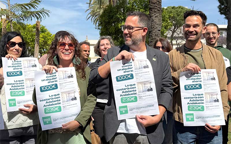 “Esto es absolutamente insostenible. Y por eso hemos sacado esta campaña que vamos a ir repartiendo por toda Andalucía. Lo que cuesta ahora mismo un piso en Idealista en esta zona, en torno a 1.000 euros, y lo que costaría aplicando justamente la ley de Adelante Andalucía de regulación del precio del alquiler: un 20% de la media de la renta de los hogares de esa zona. Pasaría de 1.000 euros a apenas 240 euros”, ha subrayado este presidenciable jerezano.