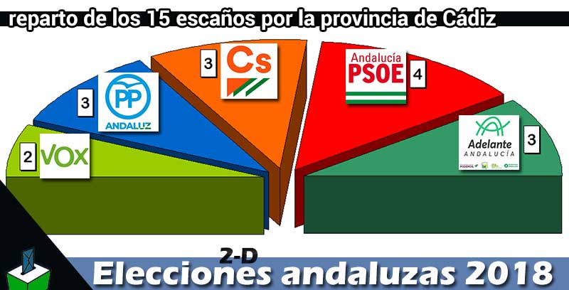 Con menos del 54% de participación final (y un 3,6% de votos en blanco y nulos), el PSOE obtiene en Cádiz 4 parlamentarios (2 menos) gracias a 121.100 votos (unos 58.000 menos); Ciudadanos asciende a la segunda posición con 3 representantes (tenía 1) y 106.000 papeletas (crece en 47.000); Adelante Andalucía continúa tercera, con 3 diputados (pierde 1), y obtiene 97.600 votos (se deja en el camino precisamente unos 47.000 con respecto a 2015); el PP se queda como cuarta fuerza con 89.000 sufragios (47.000 menos) y 3 representantes (1 menos); y se estrena Vox con hasta 2 escaños (57.000 votos, mientras hace tres años lograron poco más de 2.000).