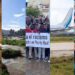 Tras la pancarta frente a la Subdelegación / FOTO: CSIF