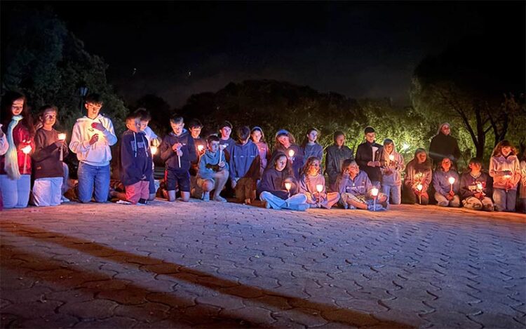 Uno de los momentos más significativos del campamento fue un juego nocturno que finalizó con la adoración al Santísimo. En la oscuridad, los jóvenes sostenían velas apagadas. Al ser expuesto Jesús Eucaristía, comenzaron a encender sus velas una por una.