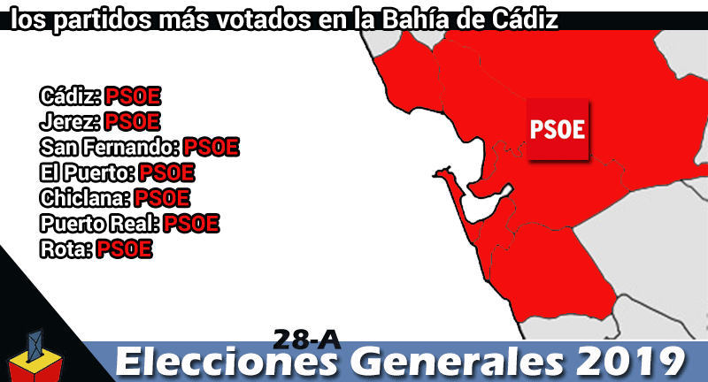 El PSOE sido la lista más votada en 44 de los 45 municipios de la provincia. La secretaria general de los socialistas gaditanos, Irene García, en la misma noche electoral ya felicitaba públicamente al “próximo presidente del Gobierno, Pedro Sánchez”, por “una victoria clara en un día de alegría, en una jornada de inmensa felicidad para los socialistas de la provincia”.