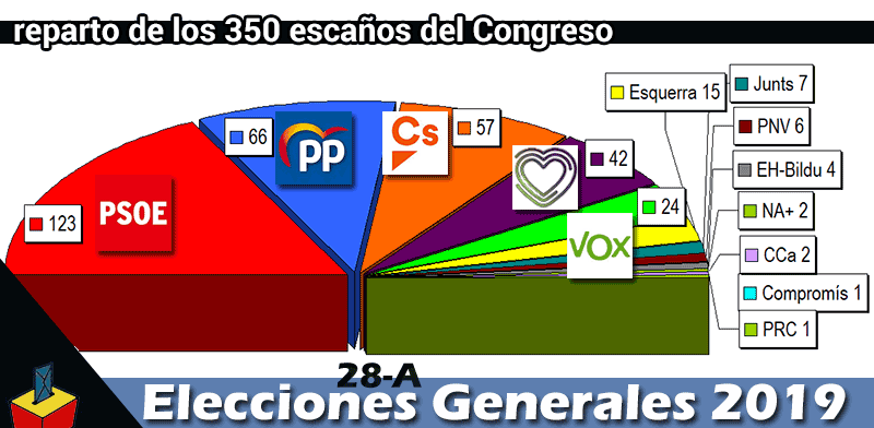 Por otro lado, este 28-A supone el descalabro del PP de Pablo Casado, que se deja por el camino 71 diputados, y aguanta a lo justo como segunda fuerza política en la escena nacional. No le ha salido bien esa estrategia de sonreír y extremar discursos y mensajes, el votante de ultraderecha que siempre ha convivido en el seno de los populares ha preferido irse a Vox, donde sí se siente liberado, o bien a Ciudadanos, que también lleva tiempo aferrado a la rojigualda y crispando la convivencia, como máximas. Esa radicalización parece que sí le ha funcionado en parte a Rivera, aunque todo el odio contra Catalunya y el marketing simplista y maniqueo empleados en estos meses sólo le han valido para colocarse como tercer partido, sumando 25 escaños, que no son pocos. Y la tercera derecha, la extrema y sin complejos ni vergüenza liderada por el ex del PP Santiago Abascal, se estrena en el Congreso con 24 sillones.