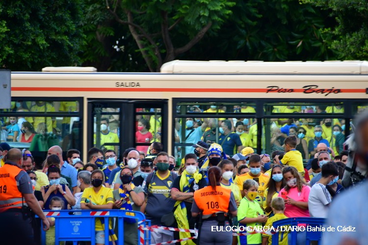 Recibimiento de la afición antes del Cádiz-Fuenla (11-07-2020)