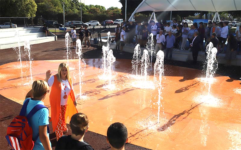 El reestreno del parque contó con la presencia de alumnos del CEIP La Marquesa y del IES La Granja, junto con representantes de la comunidad educativa de ambos centros y del CEIP Las Granjas, además de técnicos municipales de Urbanismo y de la empresa Aquajerez, que ha patrocinado y diseñado la nueva fuente con surtidores en el suelo, que incluye un sistema de recuperación de aguas que permite un mayor ahorro y menor consumo.