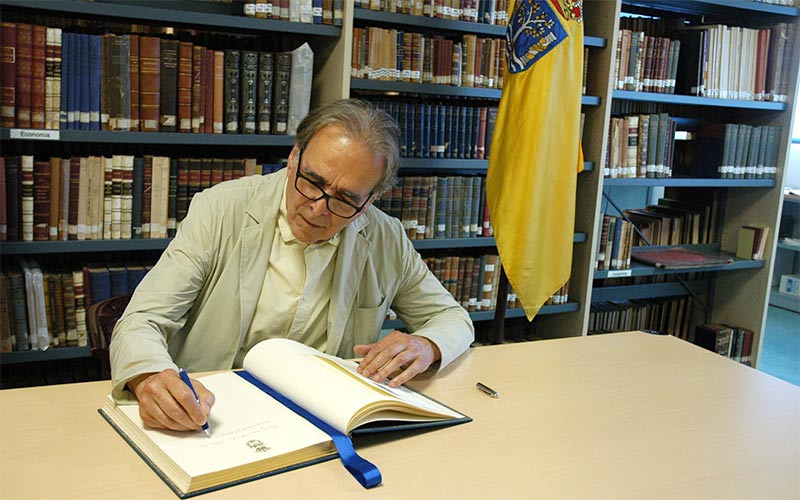 En compañía de la vicerrectora de Política Científica y Tecnológica de la UCA, Mª Jesús Mosquera, el delegado del Rector para el campus de Jerez, Rafael Peña, y el director del Instituto Universitario de Investigación para el Desarrollo Social Sostenible (INDESS), Manuel Arana, el ministro Subirats comenzaba su recorrido en el edificio de la Biblioteca, para conocer sus salas de lectura, espacios de aprendizaje, laboratorio de docencia virtual, sala de exposiciones y sala de Fondos Antiguos, donde procedió a firmar en el Libro de Honor de la UCA.