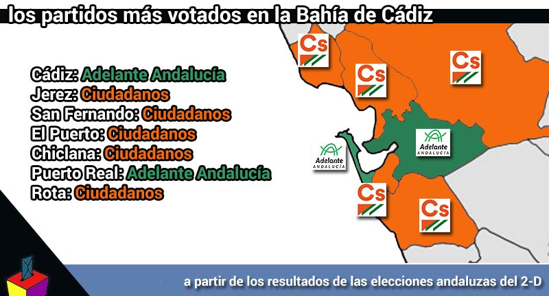 En este contexto, y extrapolando los datos reales que arrojan los últimos comicios andaluces en cada una de las localidades que nos entretiene (y contando un preocupante 50,60% de abstención global), Ciudadanos y Adelante Andalucía (la confluencia de Podemos e IU) serían los partidos más apoyados, seguidos muy de cerca por el PSOE. Las tres formaciones se moverían en una diferencia de menos de 2.000 votos (entre unos 62.000 y 60.000).