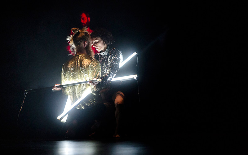 CRÍTICA. La documentación sobre esta pieza nos habla de un largo proceso en el trabajo de preparación de la coreografía en los tres pilares sobre los que se soporta: luz, danza y música; por este orden. El trabajo de investigación y creación para este espectáculo se desarrolló Teatro Francisco Rabal de Pinto, del que es compañía residente desde 2018. Allí cuentan con una “caja escénica” con todo el equipo técnico y luces para preparar la obra, creando las tres partes a la vez. Así, danza y la música surgió simultáneamente en el proceso de indagar sobre el amor y las relaciones, creándose sobre la base de un diálogo con las nuevas tecnologías en búsqueda de espacios emocionales.