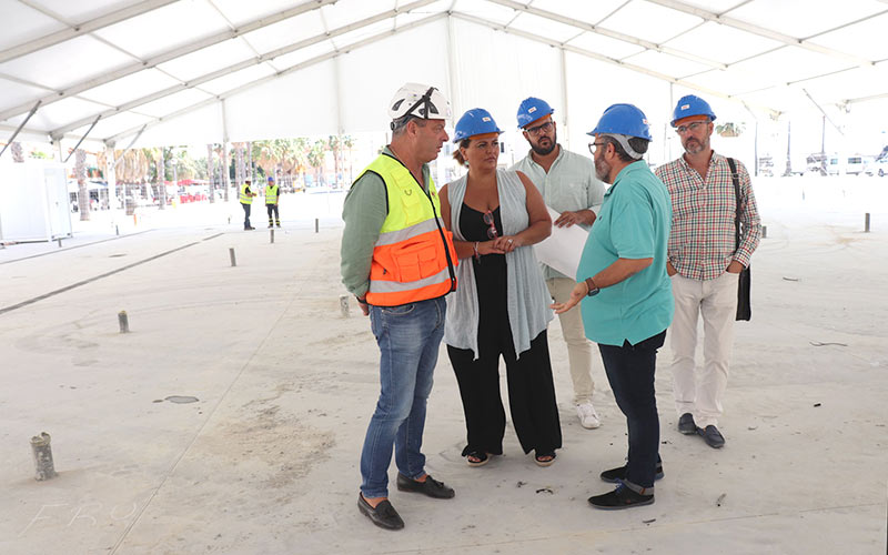 Días atrás, la alcaldesa Elena Amaya y varios de sus concejales comprobaban en persona el estado de los trabajos. Una vez realizada la obra civil para crear la infraestructura de saneamiento y suministros necesaria (acometida de agua y electricidad, sistema de desagüe, etc.), se ha procedido a instalar la estructura de la carpa.