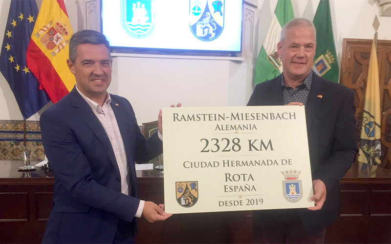 Rota y Ramstein-Miesenbach, a 2.328 kilómetros de distancia, están desde ahora “mucho más cerca”, al menos de forma simbólica, gracias al hermanamiento definitivo entre el municipio español y el alemán que comparten el hecho de soportar una base militar con presencia norteamericana (“una ventaja, ya que nos hace municipios abiertos y multiculturales aunque manteniendo nuestras raíces”). En abril se sellaba con una visita de la delegación gaditana a Alemania, y ahora ha sido la comitiva del país germano la que ha estado por la Villa roteña. Así, además del acto protocolario, ha participado en encuentros y reuniones con representantes del tejido empresarial y asociativo local.
