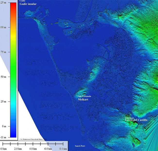 De hecho, en esta nueva vía de investigación, se propone como mejor emplazamiento el cerro de los Mártires en San Fernando. La propuesta se ha basado en la utilización de los datos del Instituto Geográfico Nacional y del Instituto Español de Oceanografía, además de otros argumentos histórico-arqueológicos, como base cuantitativa de invalidación de esa situación tradicional en función de las oscilaciones, acciones y nivel del mar en el siglo IX a.C.