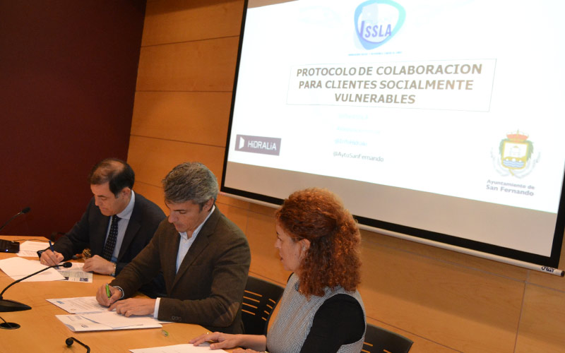 El Ayuntamiento de San Fernando e Hidralia, empresa concesionaria del servicio de agua y alcantarillado, han firmado el protocolo de actuación para evitar cortes de suministro a las familias más vulnerables del municipio.
