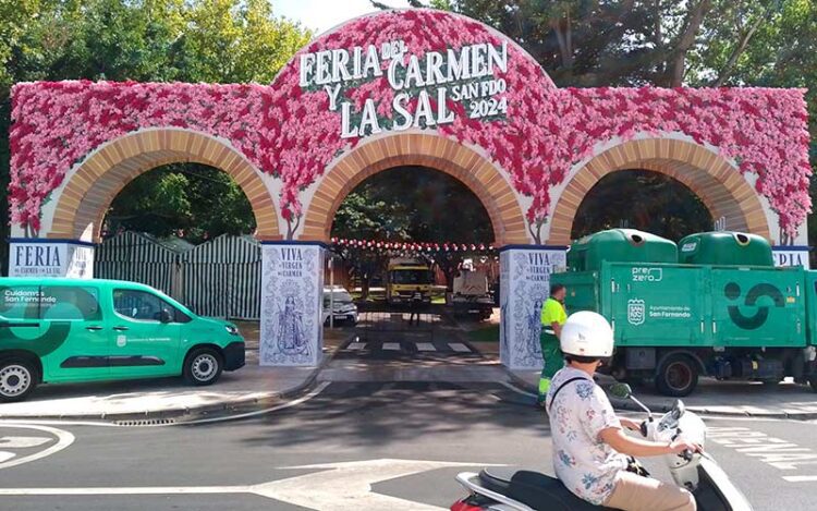 La actividad no para en el Parque Almirante Laulhé, de San Fernando, en las horas previas al encendido oficial de la Feria del Carmen y de La Sal 2024, que se inaugura en la noche de este jueves 11 y se prolongará hasta el festivo martes 16 de julio, cuando se clausurará sin fuegos artificiales.