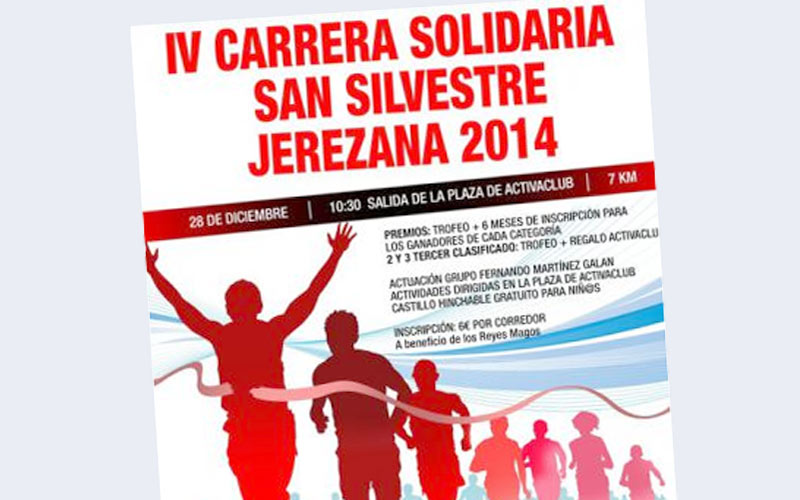 La IV carrera solidaria San Silvestre Jerezana se celebrará el domingo 28 sobre un recorrido de siete kilómetros. La salida se realizará desde las inmediaciones del centro deportivo Activa Club Jerez, que una edición más la ha organizado con la colaboración de la concejalía de Deportes, la Diputación, la Asociación de los Reyes Magos y la Federación Andaluza de Atletismo. Se confía en superar los 250 corredores.