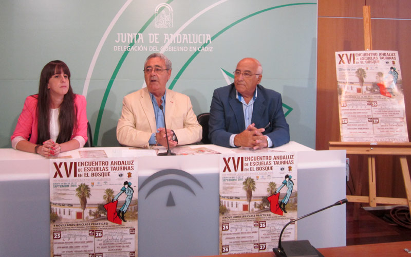 El XVI Encuentro Andaluz de Escuelas Taurinas se celebrará en El Bosque del 25 al 27 de septiembre. La cita era presentada hace unos días en la delegación del Gobierno andaluz en Cádiz por parte de la alcaldesa de El Bosque, Pilar García, el presidente de la Asociación de Escuelas Taurinas Andaluzas, Eduardo Ordóñez, y el entonces todavía delegado territorial de Fomento y Vivienda, Manuel González Piñero.