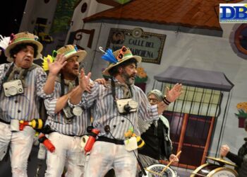 PASE DE PRELIMINARES En lo arto del campanario revolotea la comparsita sevillana ‘Viaje a la vida’. Van de cigüeñas, sí, esas que traen bebés por encargo. Lo desvela el final de una luminosa pero oscura presentación. Jesús Martínez pone la letra y Javier Vargas, la música. “Pero la culpa es mía, maldito el día que ...